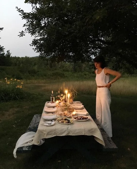 Celebrity chef Allie Fitzpatrick will be joining us for the evening as she prepares dinner for us. We’ll gather around the table outside and drink wine until the sun goes down.
